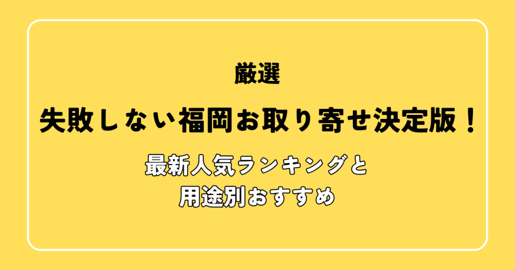 【厳選】失敗しない福岡お取り寄せ決定版!最新人気ランキングと用途別おすすめ