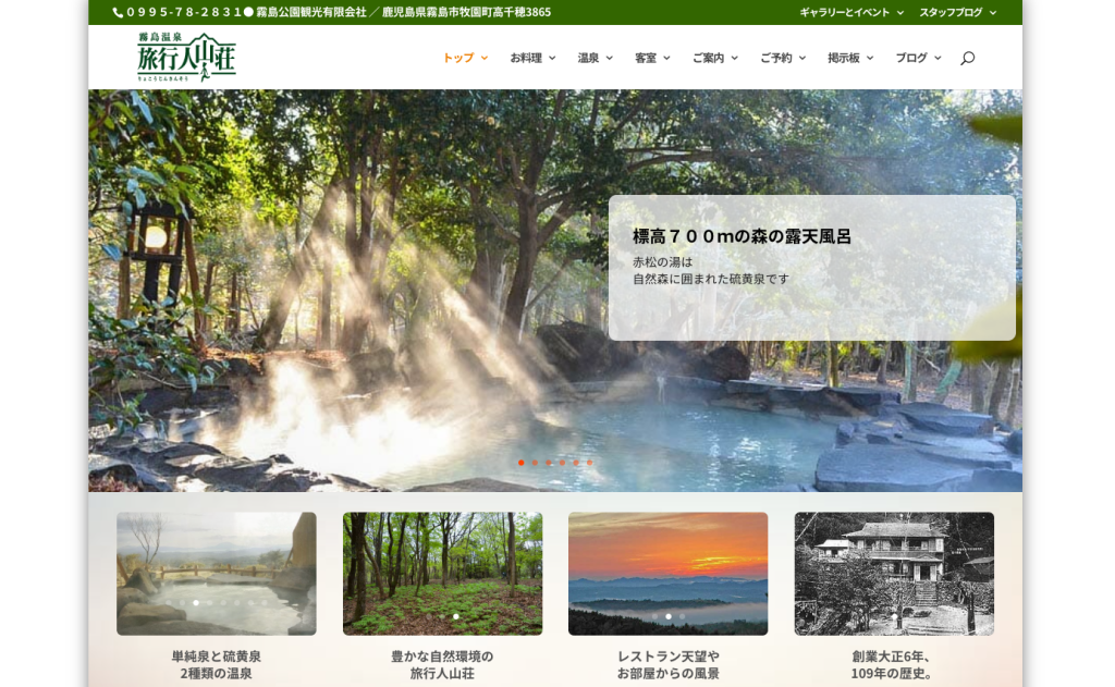 旅行人山荘」は、大正時代から続く歴史を持ちながら、常に新しい感動を与えてくれる宿です。標高700m、5万坪という広大な森の中に位置し、お花見と森林浴を同時に楽しむことができます。