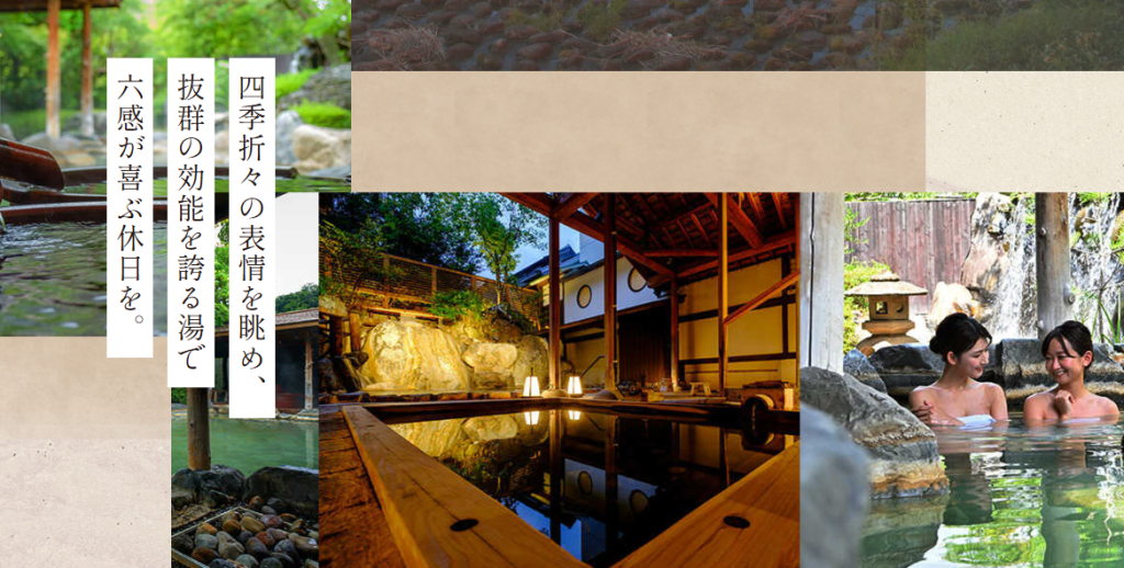 | 温泉 | 足湯やカラスの行水 | 名湯に浸かり放題で肌ツルツル |