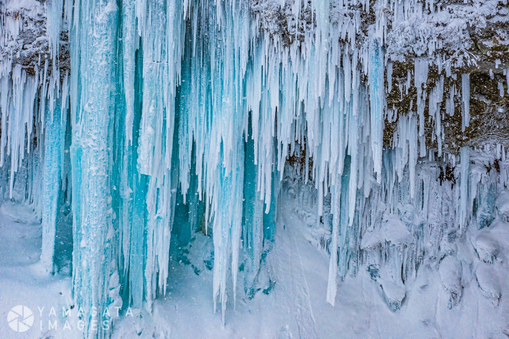 特に蔵王の氷瀑は気温が−10℃以下になる日が多く、空気をほとんど含まない純氷が形成されやすいため、透明度の高い“アイスブルー”を鑑賞できます。